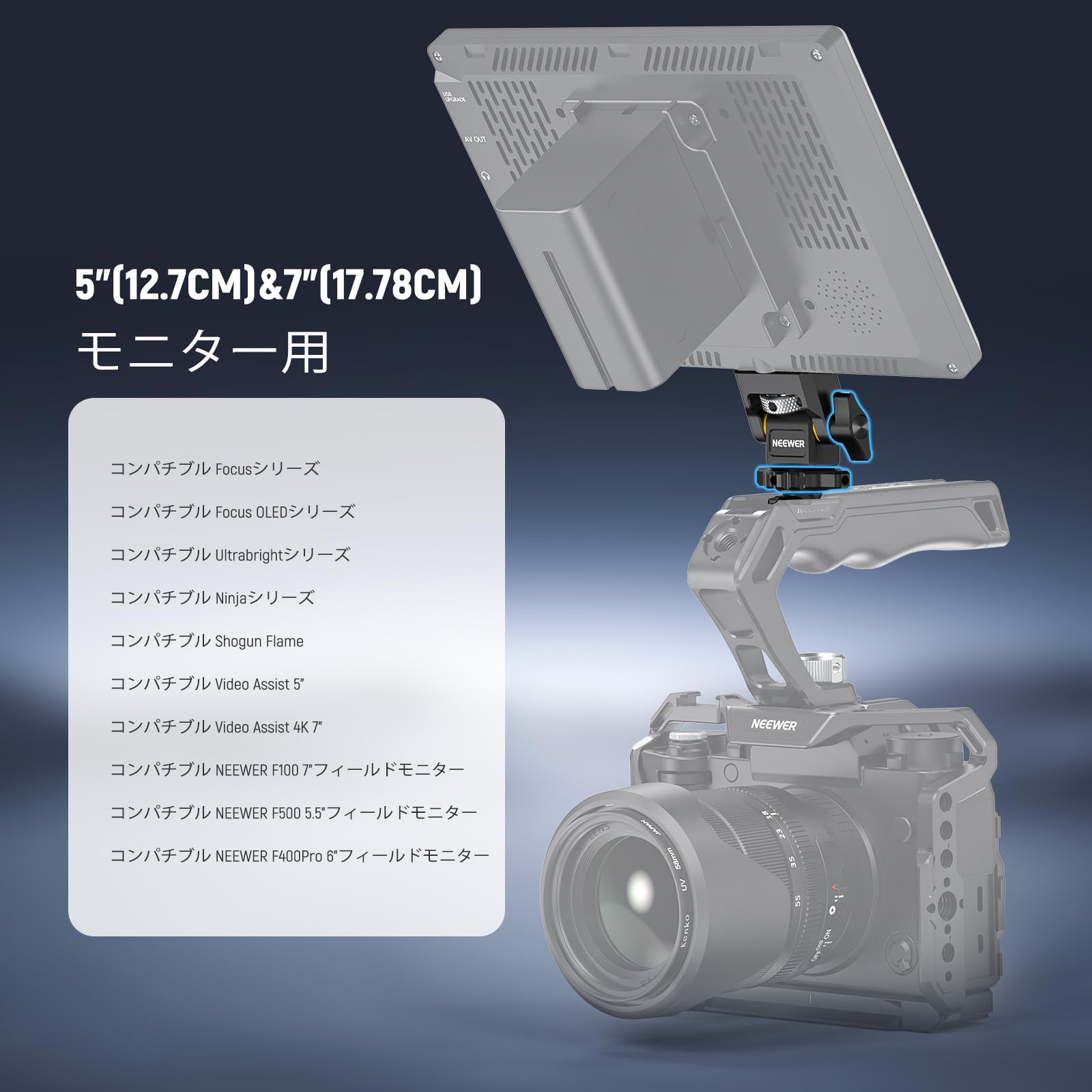 • 【5インチ~7インチカメラモニタースタンド】5インチ~7インチのフィールドモニタースタンドは、ビデオブログ、映画制作、屋外でのビデオ撮影に最適です。コールドシューアダプターは、NEEWERカメラケース、カメラバイブラー、カメラトップハンドル/サイドハンドル、ユニバーサルスプリングハンドルなど、ほぼすべてのDSLRカメラに適合します。