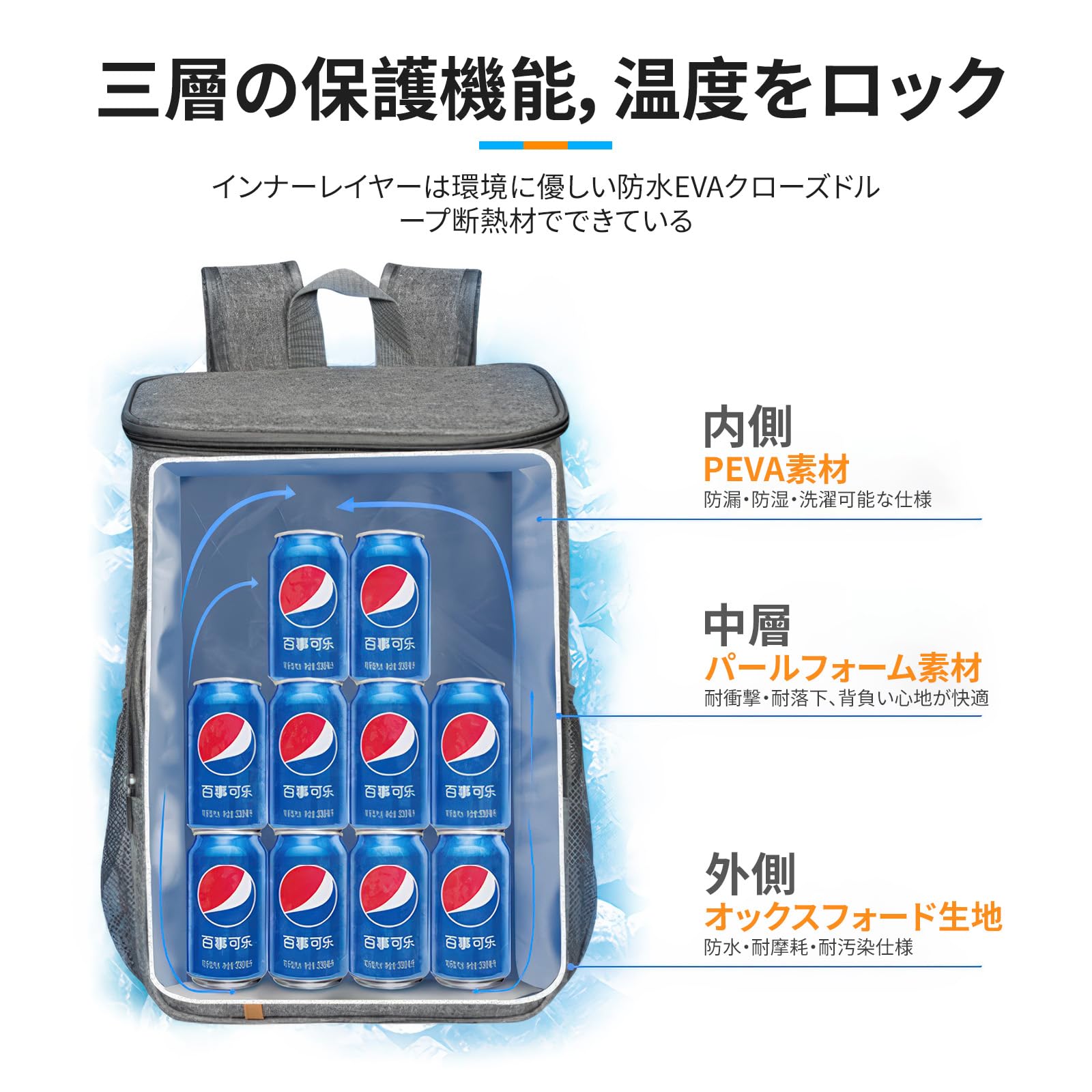• 【4層高品質素材】外層はオックスフォード生地、内層EPEフォーム厚くし、不織布、高品質のPEVAを内蔵し、外部からの熱を効果的に遮断し、内部の温度を長時間低く保ちます。アイスパック4~6個と一緒に使えば、10~20時間保冷できます。 防水性があり、溶けても漏れません。丈夫で耐久性があります。