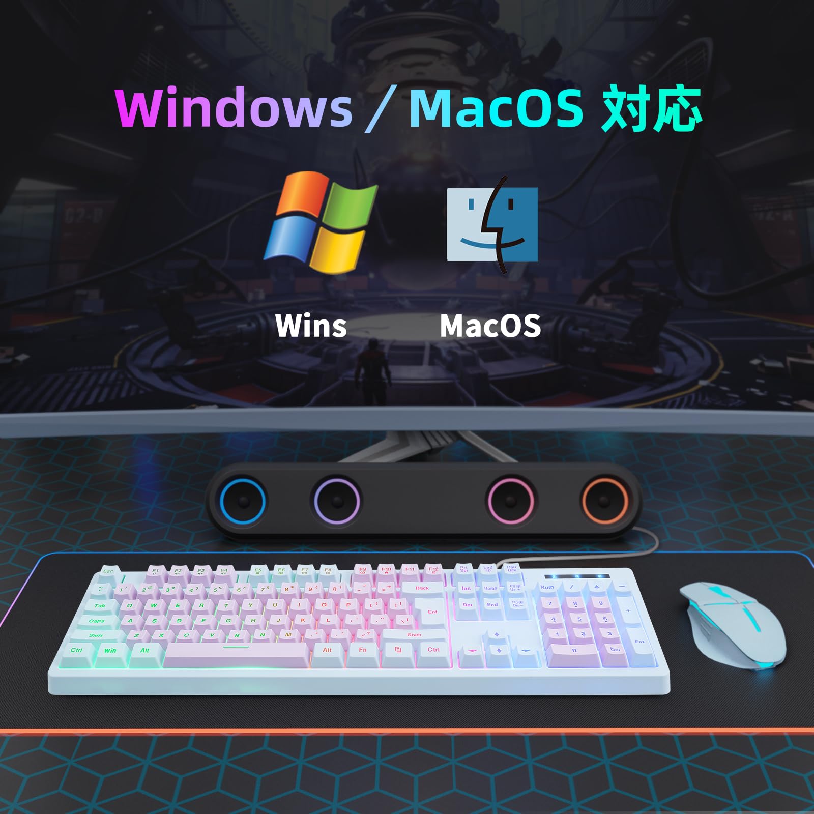 - 【104 キーレイアウト】12種類のマルチメディアショートカットと25キー同時押し衝突防止機能を備えています。人間工学に基づくアーチ型配列と滑らかなキー曲面により、長時間の使用でも疲労を軽減します。強化スペースキーによってゲーム&作業効率が大幅に向上します。