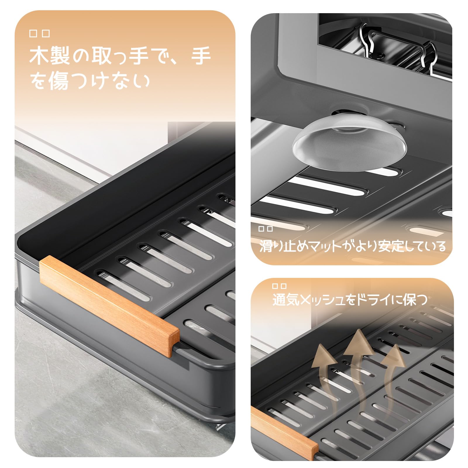 - 【❥親切な詳細設計】 この水槽の下の棚の二重ガードレールには3 cmの高さがあり、物が落ちにくいように設計されています。底部には滑り止めの透明なマットが付いており、物を置くのは不安定で、滑りにくく、底部には通気性メッシュが付いており、物の乾燥を維持している"