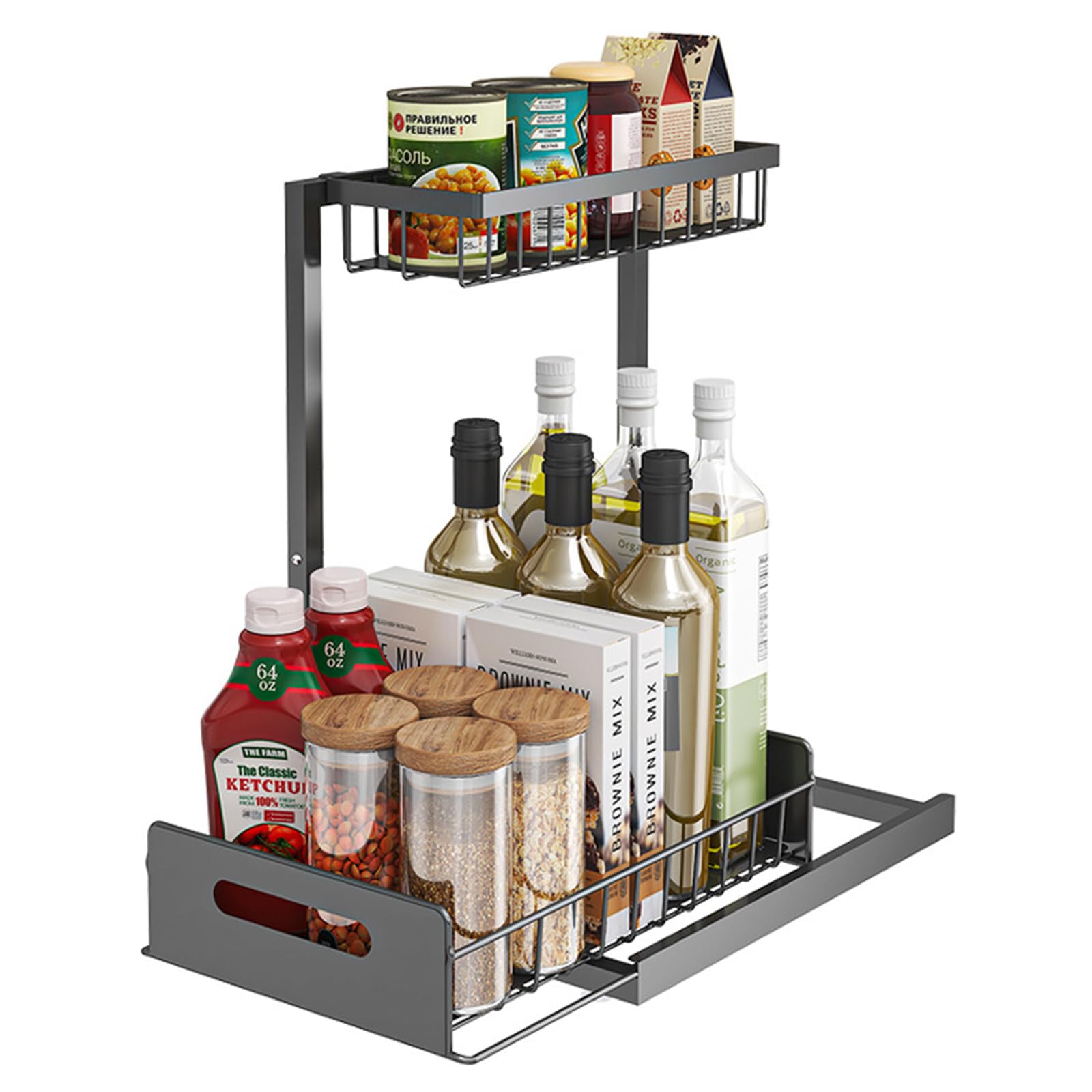 - 【省スペース設計】 この水槽下置物棚はL型設計を採用し、伝統的な死角を黄金の収納エリアに変え、極薄27 cm奥行き設計で、各種異形水槽の底部に簡単に詰め込み、二重置物、縦方向の空間を利用して、大部分のキッチンボトル缶を収納し、ドアを閉めると隠すことができ、キッチンテーブルをより清潔にすることができる