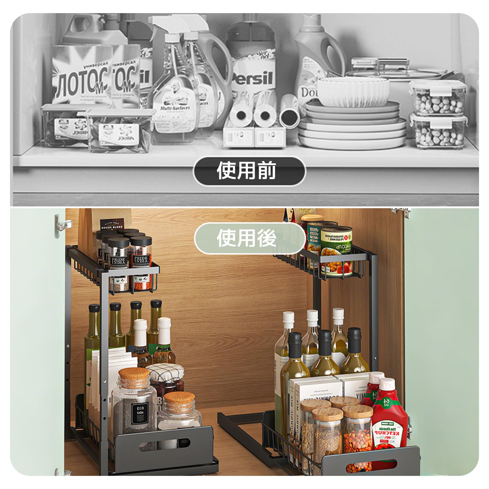 - 【多機能収納】 この物置棚は洗剤、ワイヤーボール、スポンジを完璧に収納することができるだけでなく、調味瓶、食用油、調理道具を階層的に置くことができ、また浴室用品と洗濯用品、化粧品、野菜果物などを収納することができ、調節可能な高さと引き出し設計が家の隅々に完璧に溶け込むことができる