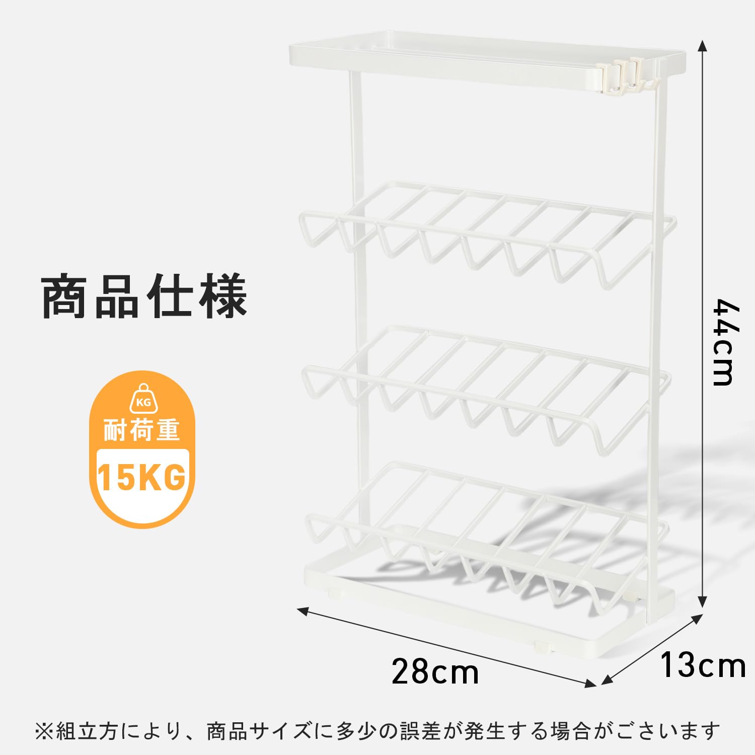 - サイズ仕様: 幅39.5cm×高さ37.5cm×奥行き15.8cm、各棚の耐荷重は最大3kgまで対応,ゴム足付きで床を傷つけず安定感も抜群。