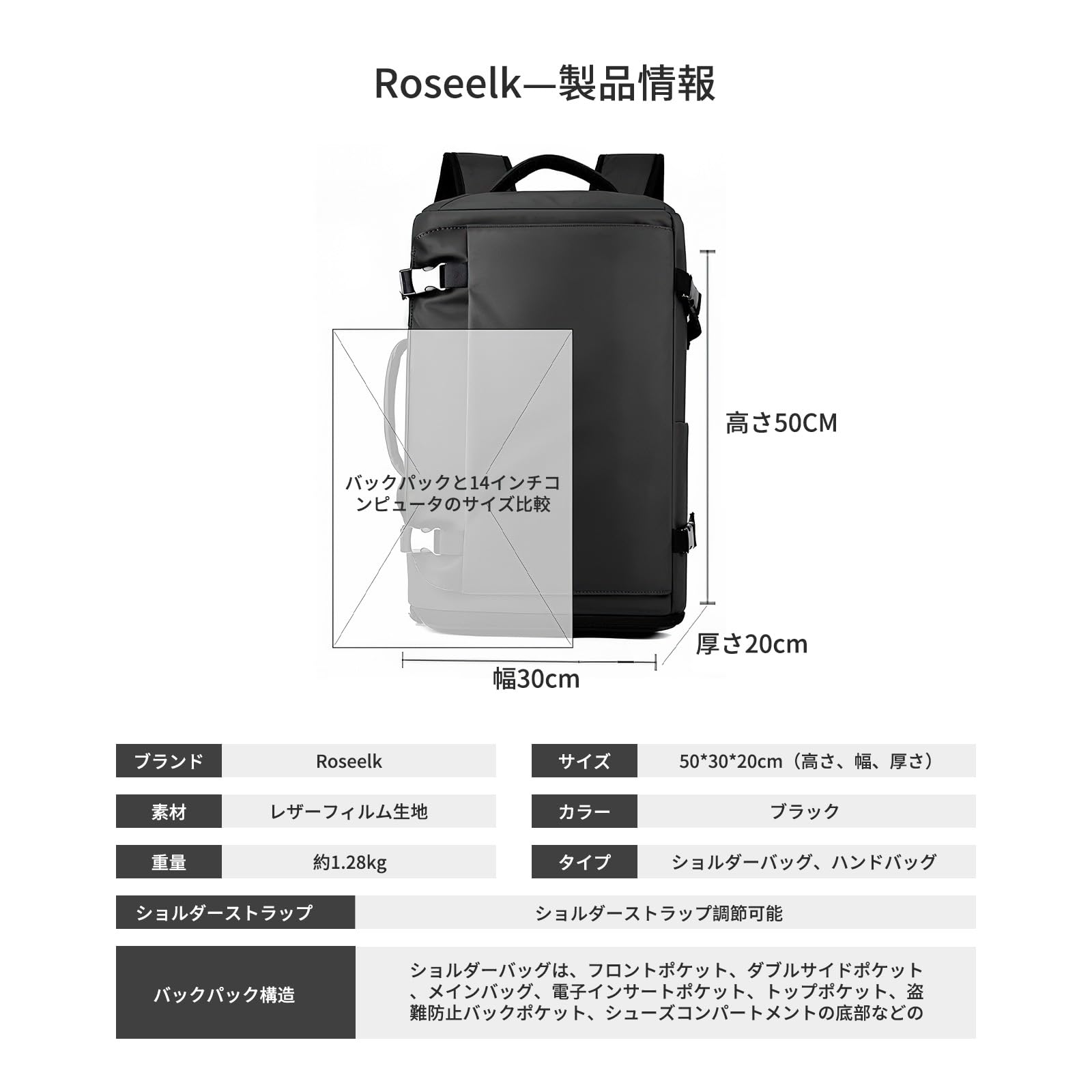 - 「新設計&180度開閉」Roseelkリュックサイズ:50*30*20cm、容量は30Lです。15.6/17.3インチのPC、パーソナルケア、靴、財布、水筒、カメラ、A4サイズの書類や出張時2-3日分の衣類など収納できます。傘、洗面用品、タオル、ハンカチなどが入っている液漏れ防止専用ポケットもあります。またメインポケットは180度に大きく開くため、スムーズに出し入れ、PC収納部も180度開けられ、保安検査の場合はわざわざとPCを取り出す必要が無し、さっと通過できます。ビジネスシーンはもちろん、旅行や出張でも重宝してくれです。