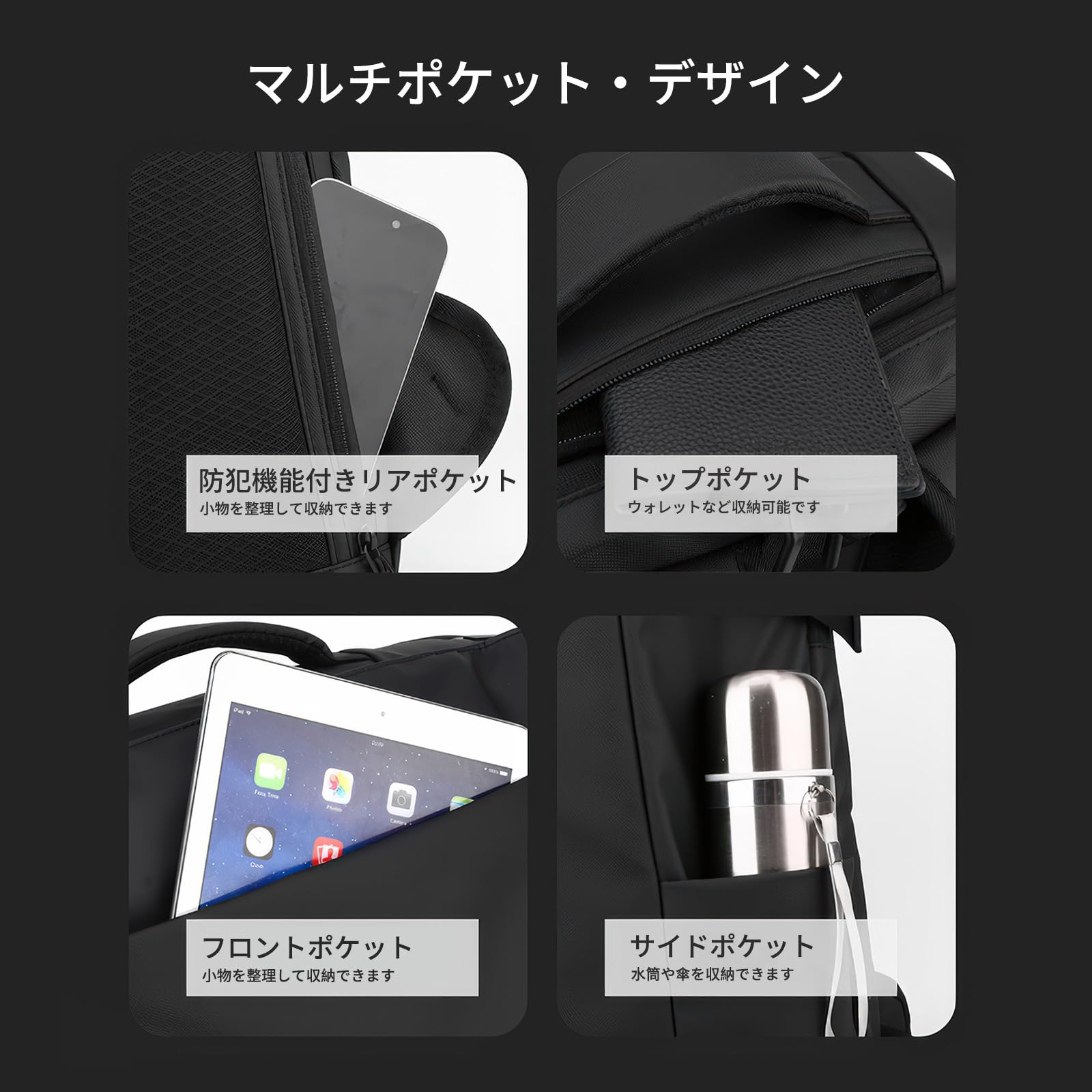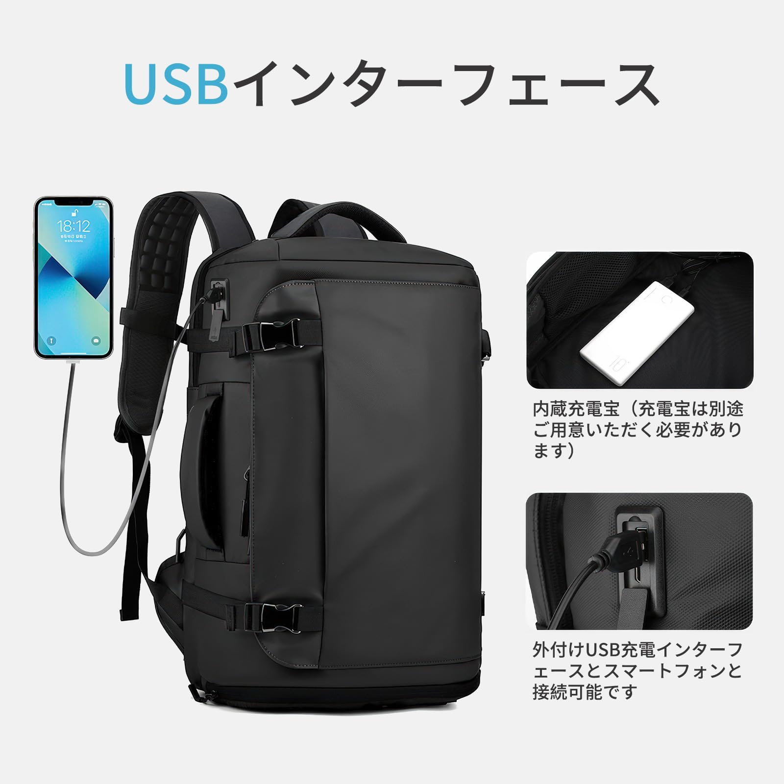 - 「USBポート&Type-C充電ポート」USBポートが付属しており、充電のイライラを解消。 モバイルバッテリーをリュックの中に入れたまま充電ができるので、歩きながらでもスマホメッセージや電話などが可能です。さらに、貴重品を収納するのに便利な背面ファスナーポケットも。旅先で便利でうれしい機能が満載されています。
