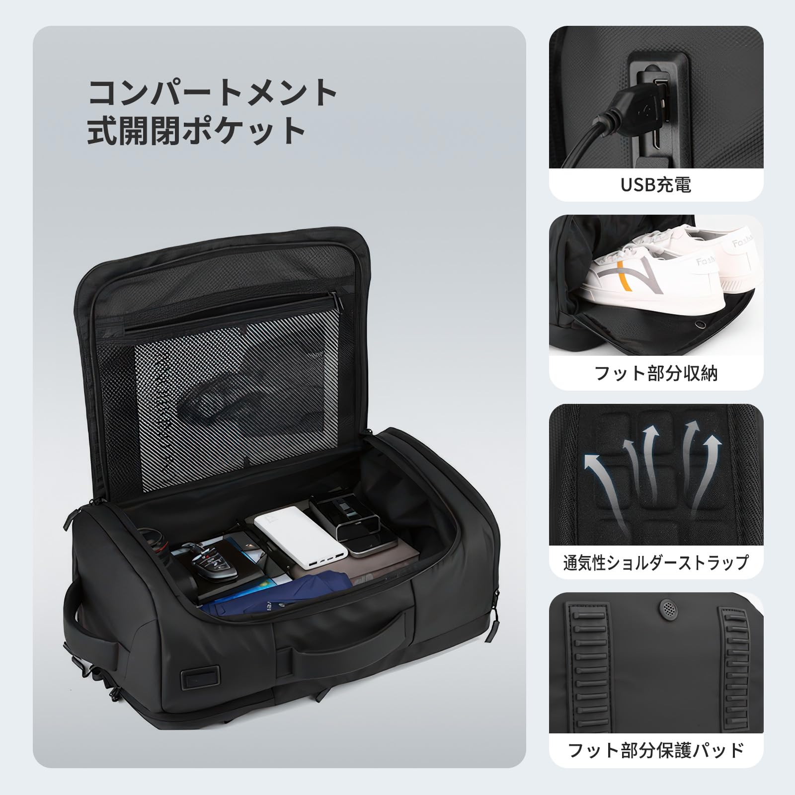 ビジネスリュック 30L大容量トラベル リュックサック 撥水生地 ジッパー スクエアバックパック 15.6インチPC対応 機内持ち込み 乾湿分離 シューズ収納 USB充電ポート付き 多機能3WAYリュックサック 通勤 通学 出張 人気 耐衝撃 おしゃれ 男女兼用