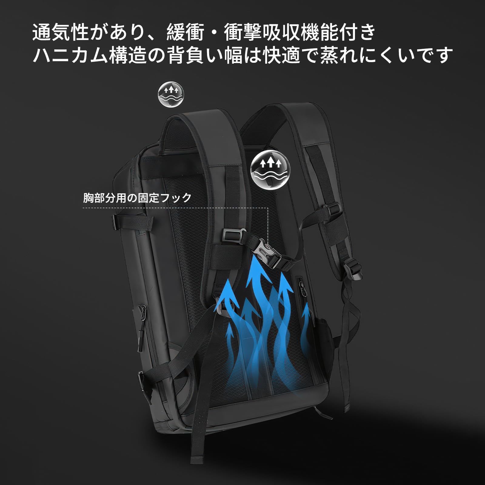 - 「強くて耐久性&人間工学設計」表面素材は傷などがつきにくい高密度の撥水性皮膜ポリエステル生地を使用していますので、耐衝撃性、耐摩耗性を実現しました。バッグ本体も耐久性があり、荷物をしっかり保護します。パッド入りの厚いバックパネルと厚手のショルダーストラップに加え、調節可能なチェストベルトが備え、肩・背中の負担を効果的に軽減し、人間工学に基づいた快適な背負い心地を実現します。背面パネルはパッド付きのエアメッシュを採用します。