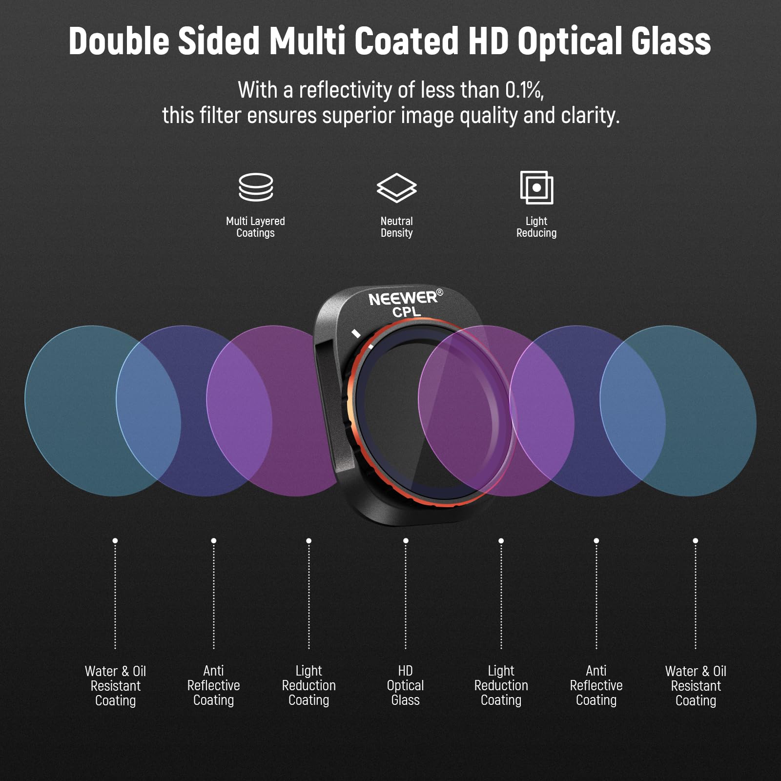 • 【マルチコートHD光学ガラス】HD光学ガラスは、色収差や光学歪みのない鮮明な画像を実現します。両面に多層保護コーティングが施され、水、油、埃、傷に強く、高い耐久性とお手入れのしやすさを実現します。クリーニングクロスが2枚付属しています。