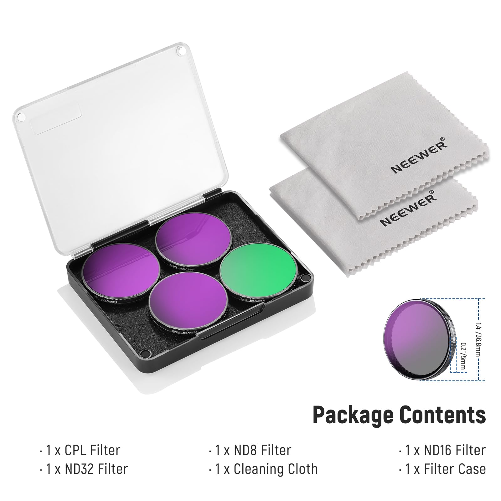 - 【コンパチブル Osmo Action 5 Pro/4/3】4枚パックフィルターキットは、コンパチブル Osmo Action 5 Pro、Action 4、Action 3で、サーフィン、カヤック、スキー、マウンテンバイク、スカイダイビング、スケートボード、ハイキングなどPOV撮影に最適です。コンテンツクリエイターやインフルエンサーにとって、アクションカメラ撮影に必要なギアとアクセサリーです。