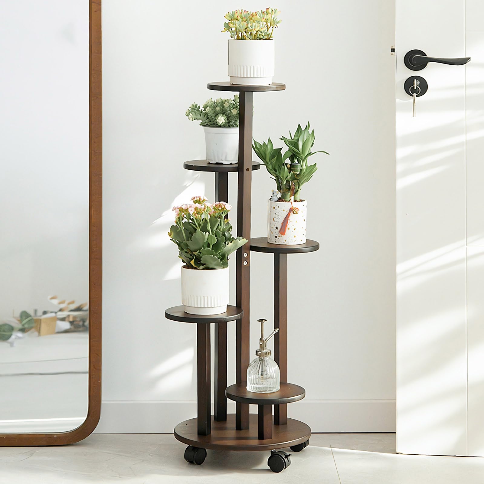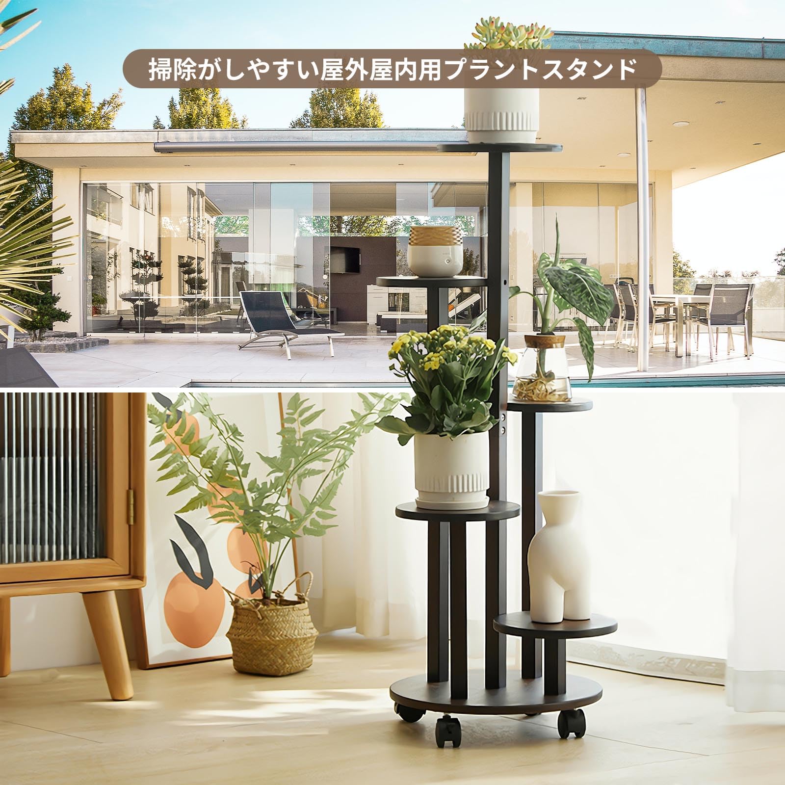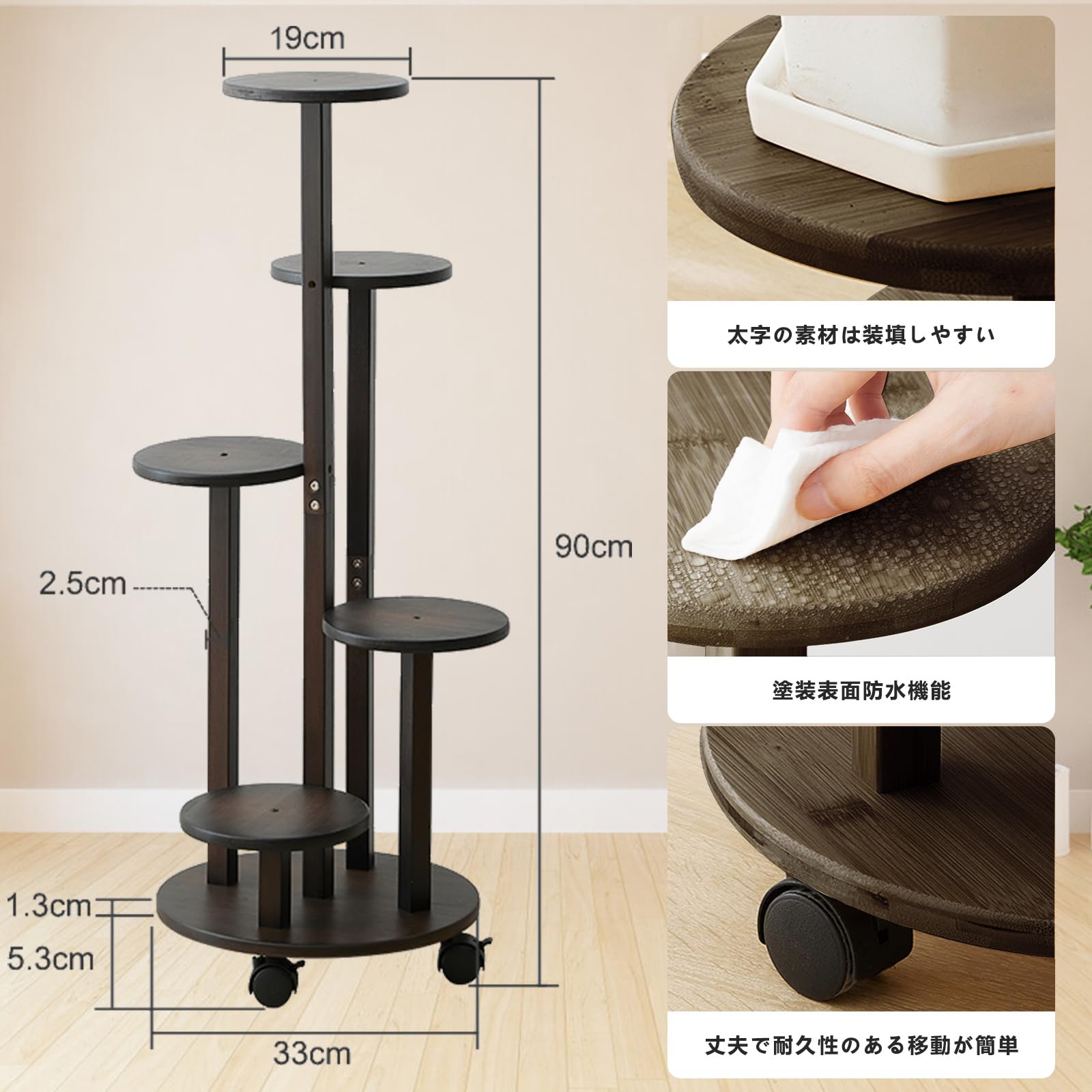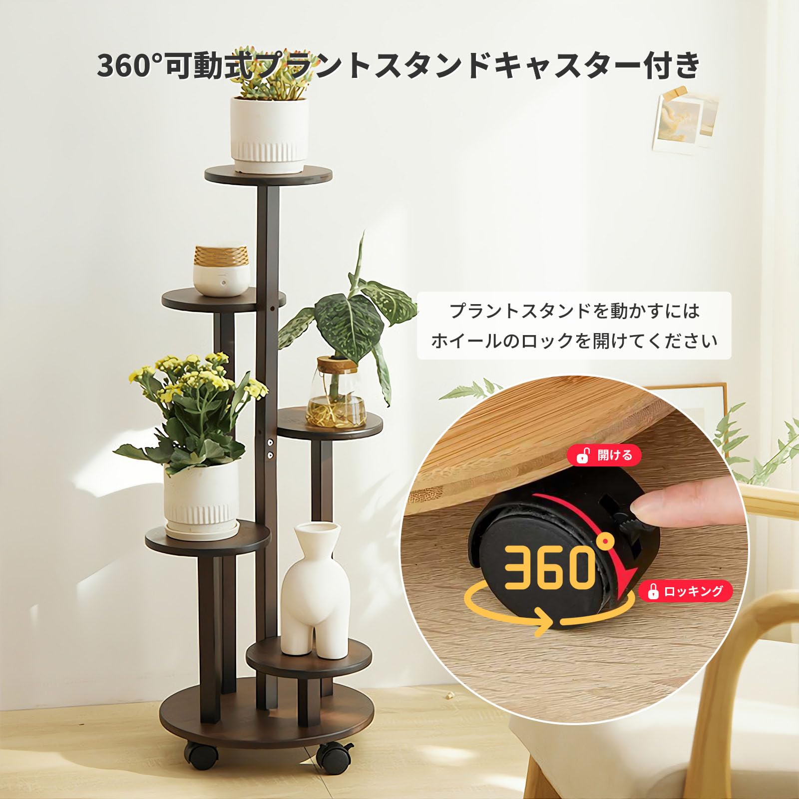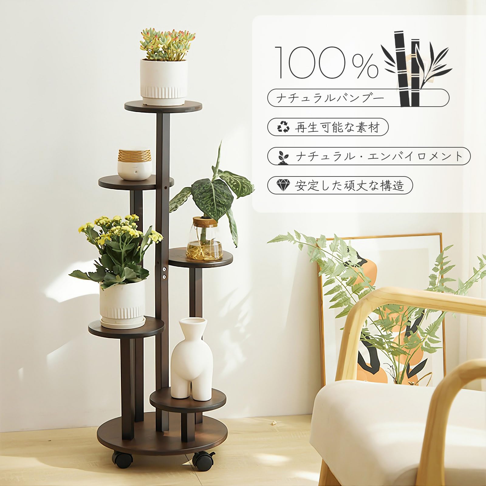 フラワースタンド 花台 室内外兼用の5段 プランタースタンド 園芸ラック 観葉 植物 花棚 リビングルームバルコニーグリーンディルフラワーポットスタンド 組み立てが簡単 移動が容易 指向性キャスター 耐荷重30㎏ おしゃれ 飾り 収納 (茶色)