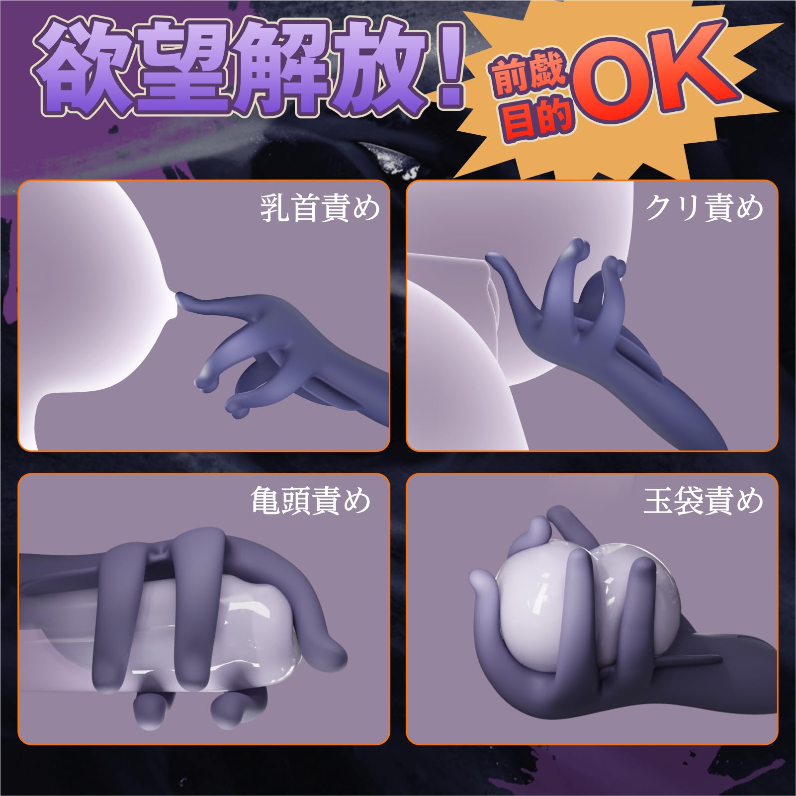 • 【振動!男女兼用】半開きのハンドポケットを亀頭に装着し、雀のような振動が今までとは違う快感をもたらします。振動モードは10種類!指先が触手のようになり、振動が強く、クリトリスや乳首など敏感な部分を愛撫します。