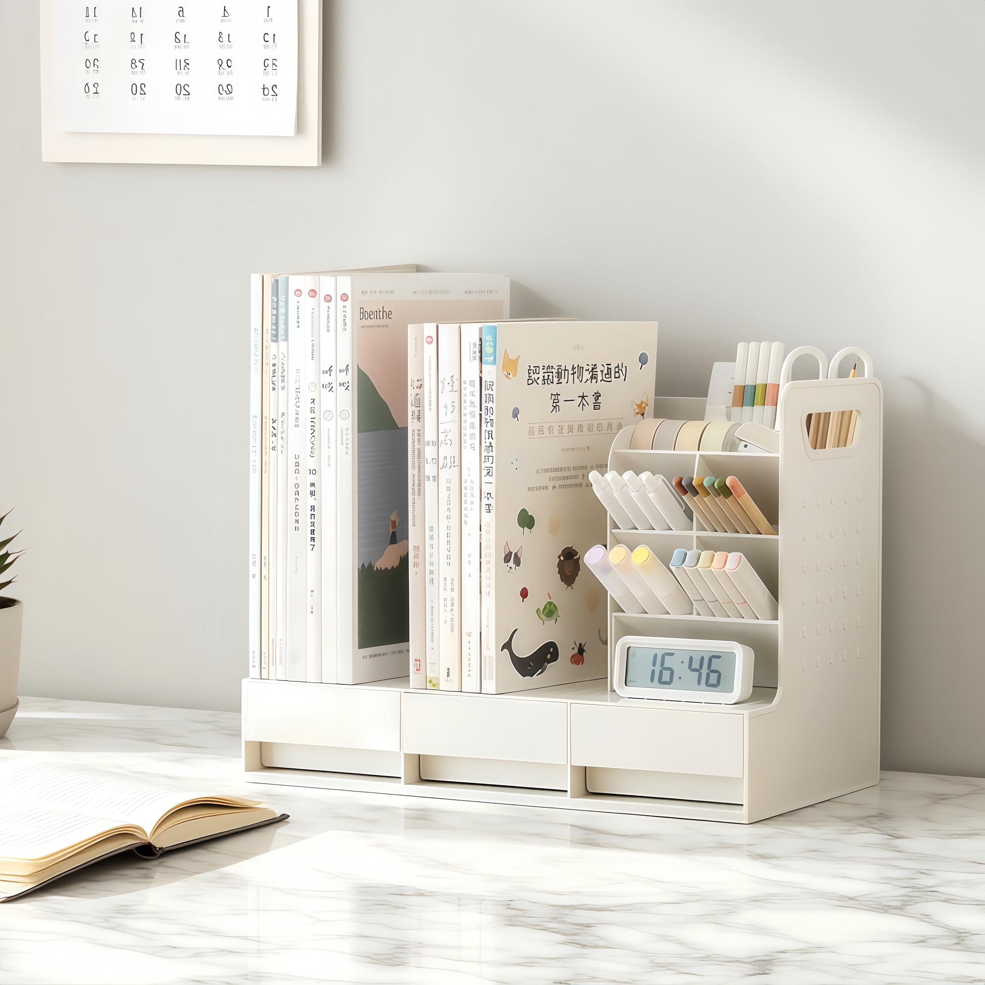- 【組み立て不要・移動が楽々】この卓上ラックは組み立てが一切不要!箱から出してすぐに使えます。組み立ての時間や手間が大幅に削減され、部屋の飾り付けに時間を費やせます。デスクオーガナイザーは軽量で持ち運び簡単。両側にハンドルが付いているため、引っ越しやお部屋の模様替えの際も、移動が非常に楽です。