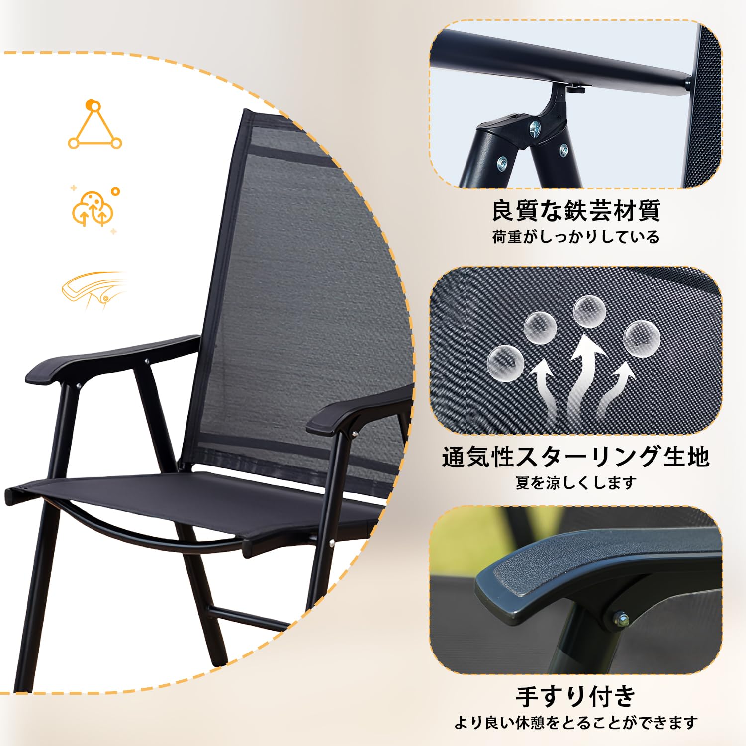折りたたみ ガーデンチェア 2脚 庭折り畳み椅子 屋外 椅子 手すり付き 幅64CM×奥行57CM×高さ92CM レジャーリクライニングチェア アウトドア釣り用アフタヌーンティー休憩ファミリービジネス インストール不要