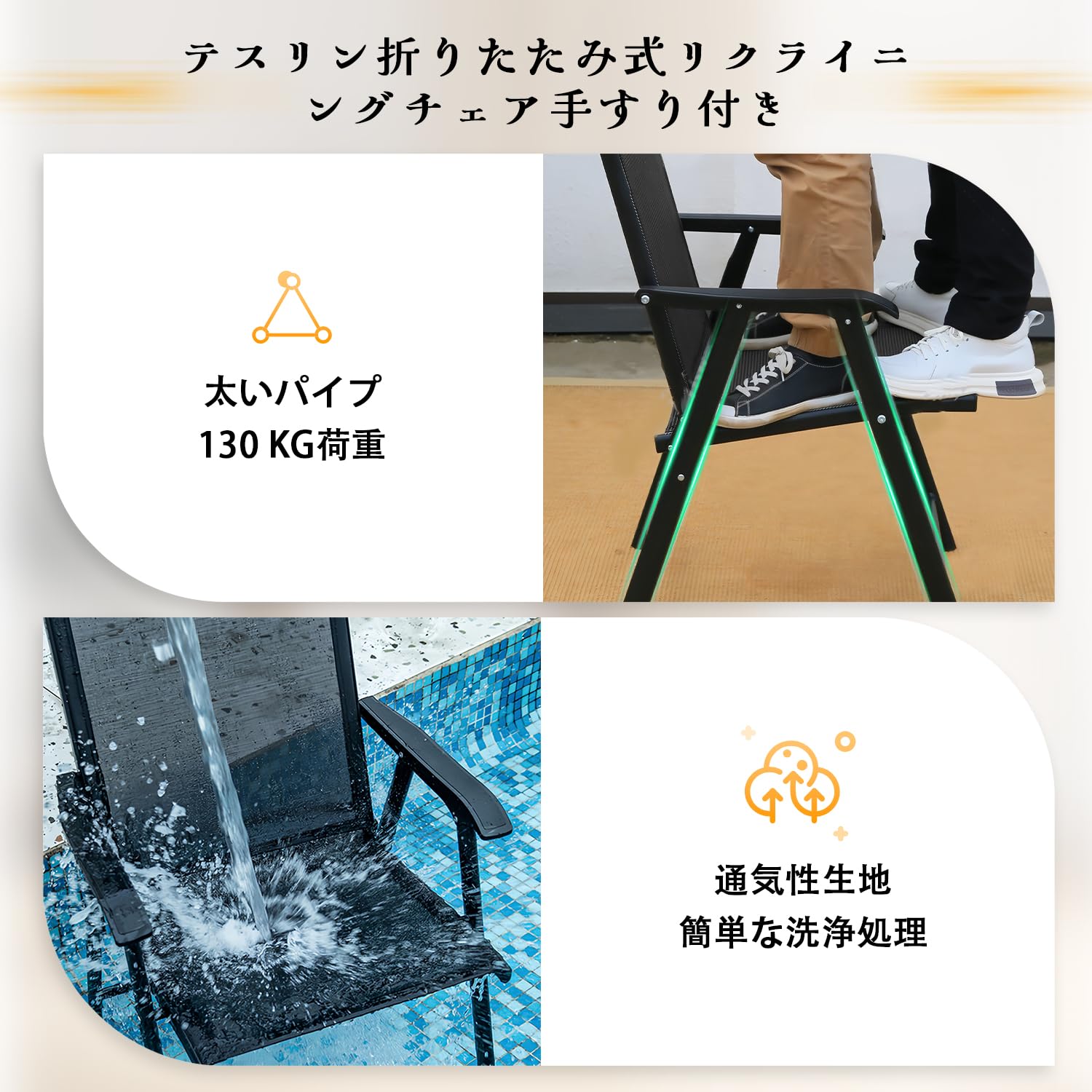 - 【マルチシーン応用】このベランダ椅子は家で使用でき、アウトドアレジャーにも適しており、ガーデン、ベランダ、テラス、プールサイドで日光浴をし、キャンプピクニックをし、軽くて持ち運びやすく、パラソルを組み合わせて使用するとより快適になり、ビーチリゾート:ターズリン生地は砂に強く、水に強く、清潔で便利である。臨時客椅子、ホームパーティー、釣りなどのシーンの予備座席など。あなたにぴったりのガーデンチェアです
