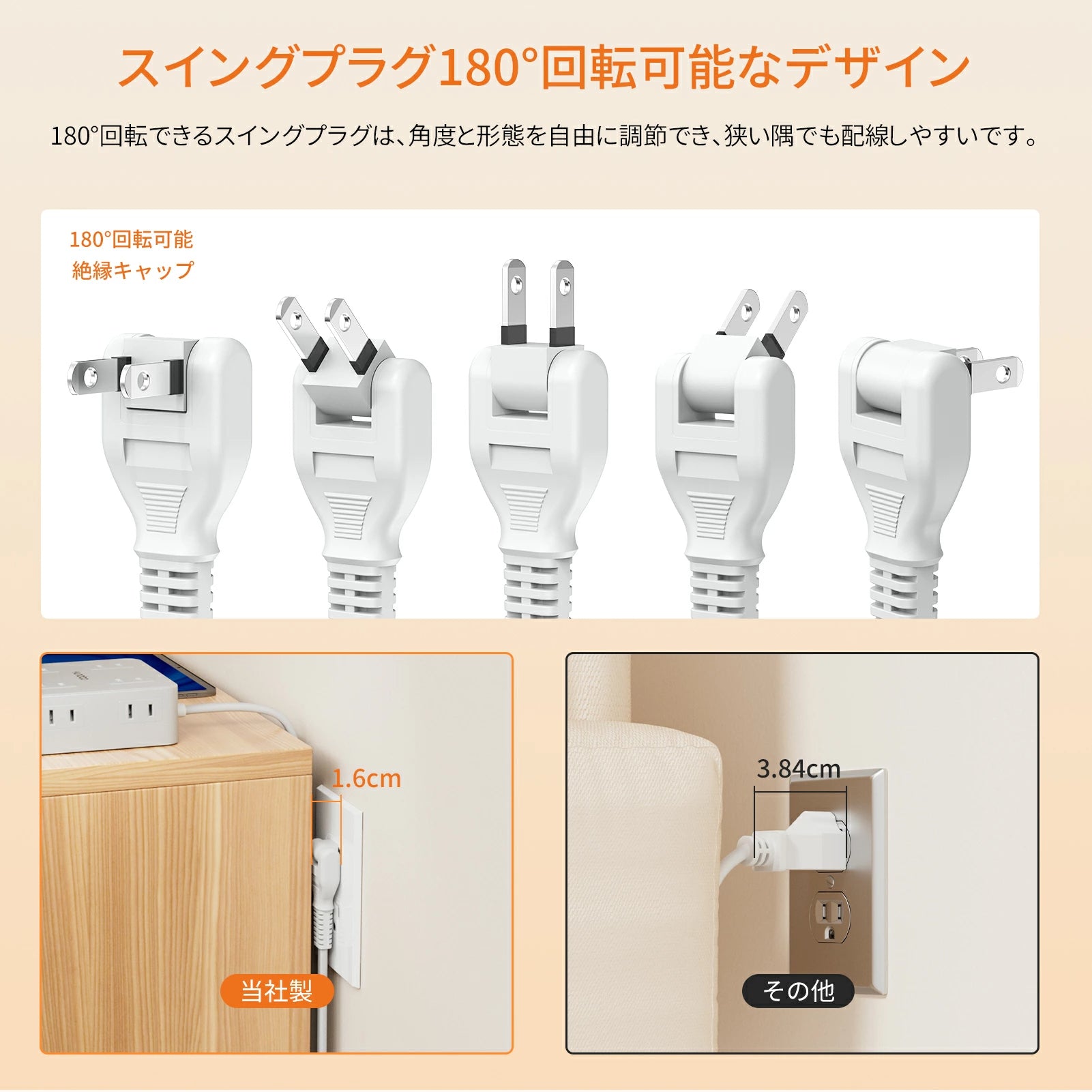 ●【コンパクトでmini型 フラットプラグ式電源タップ】