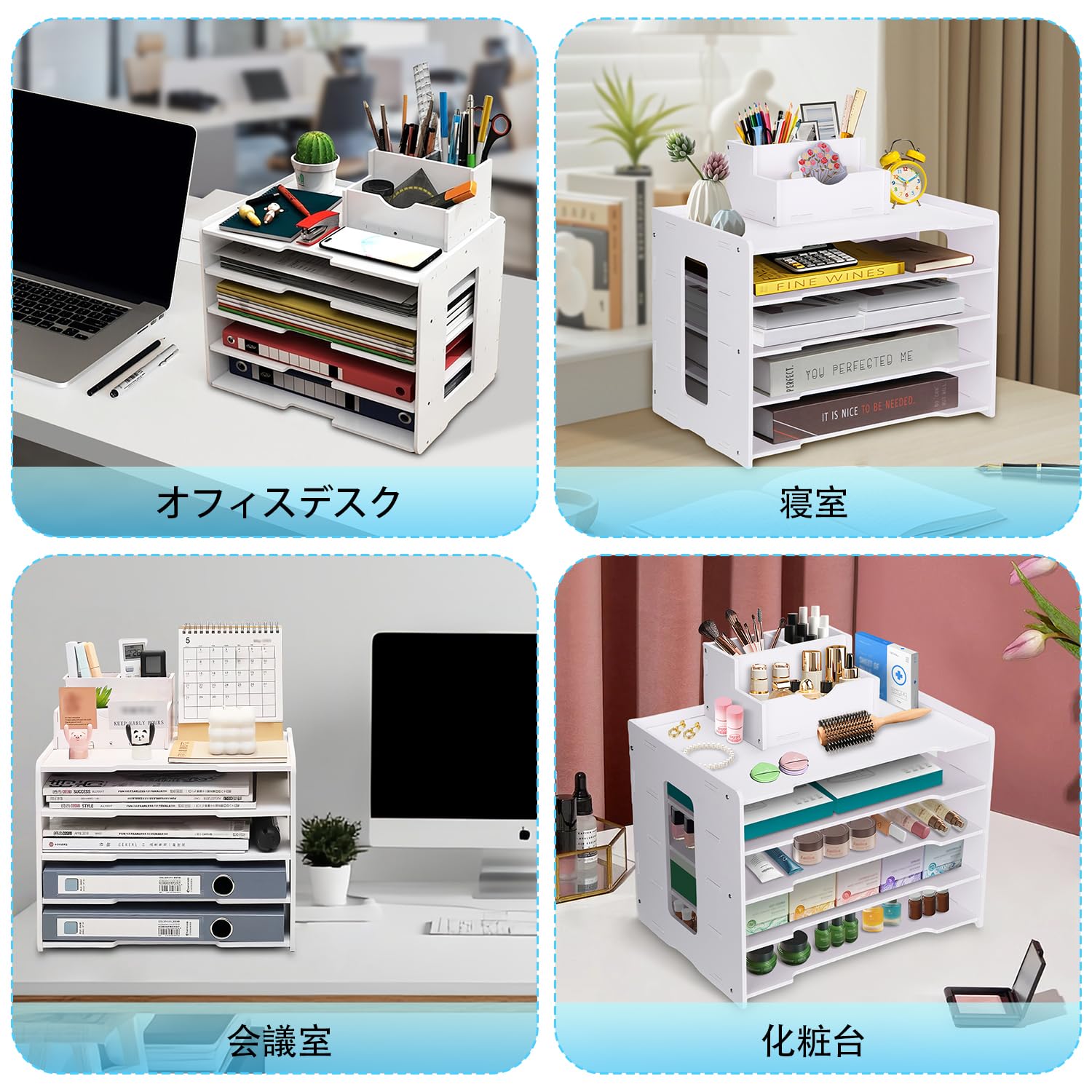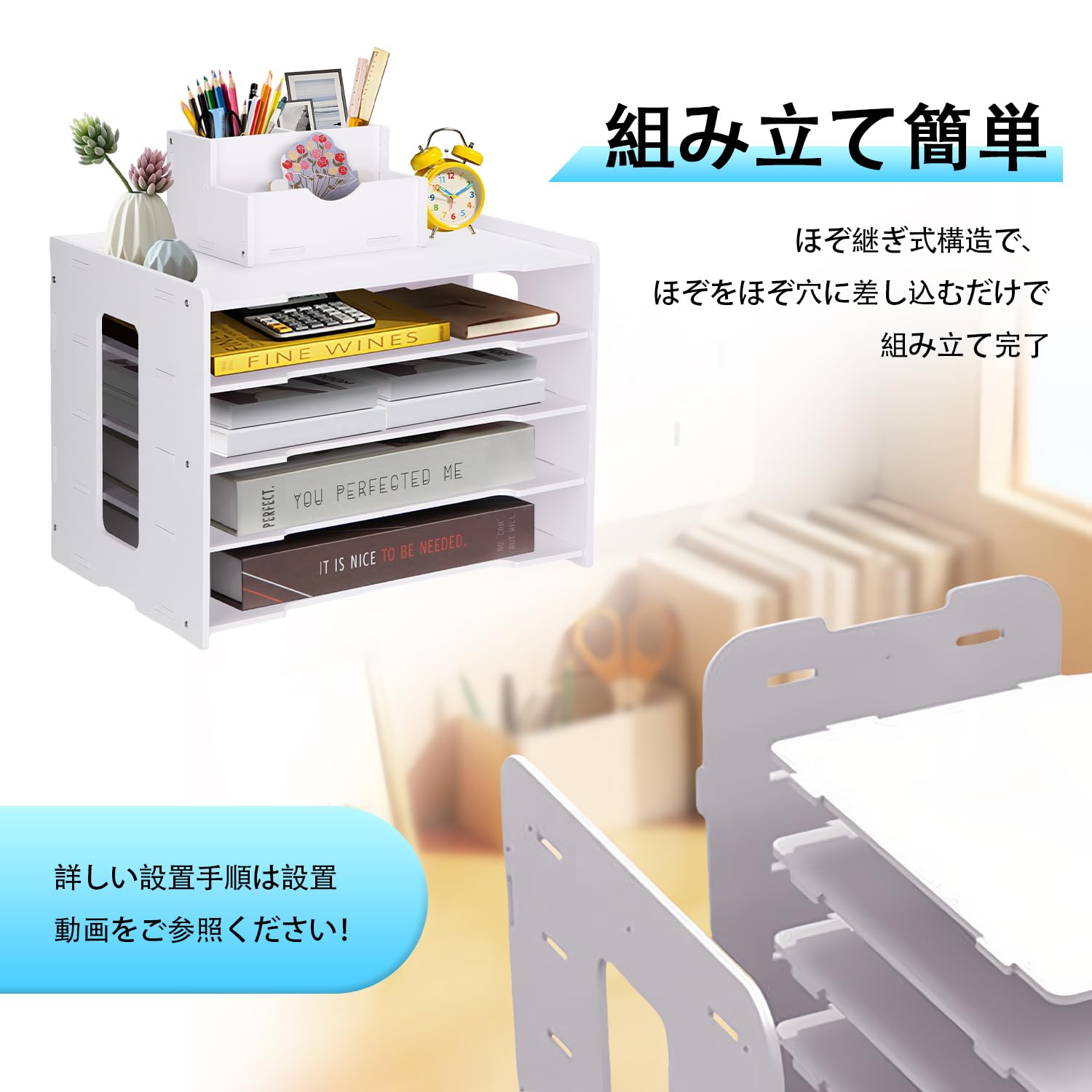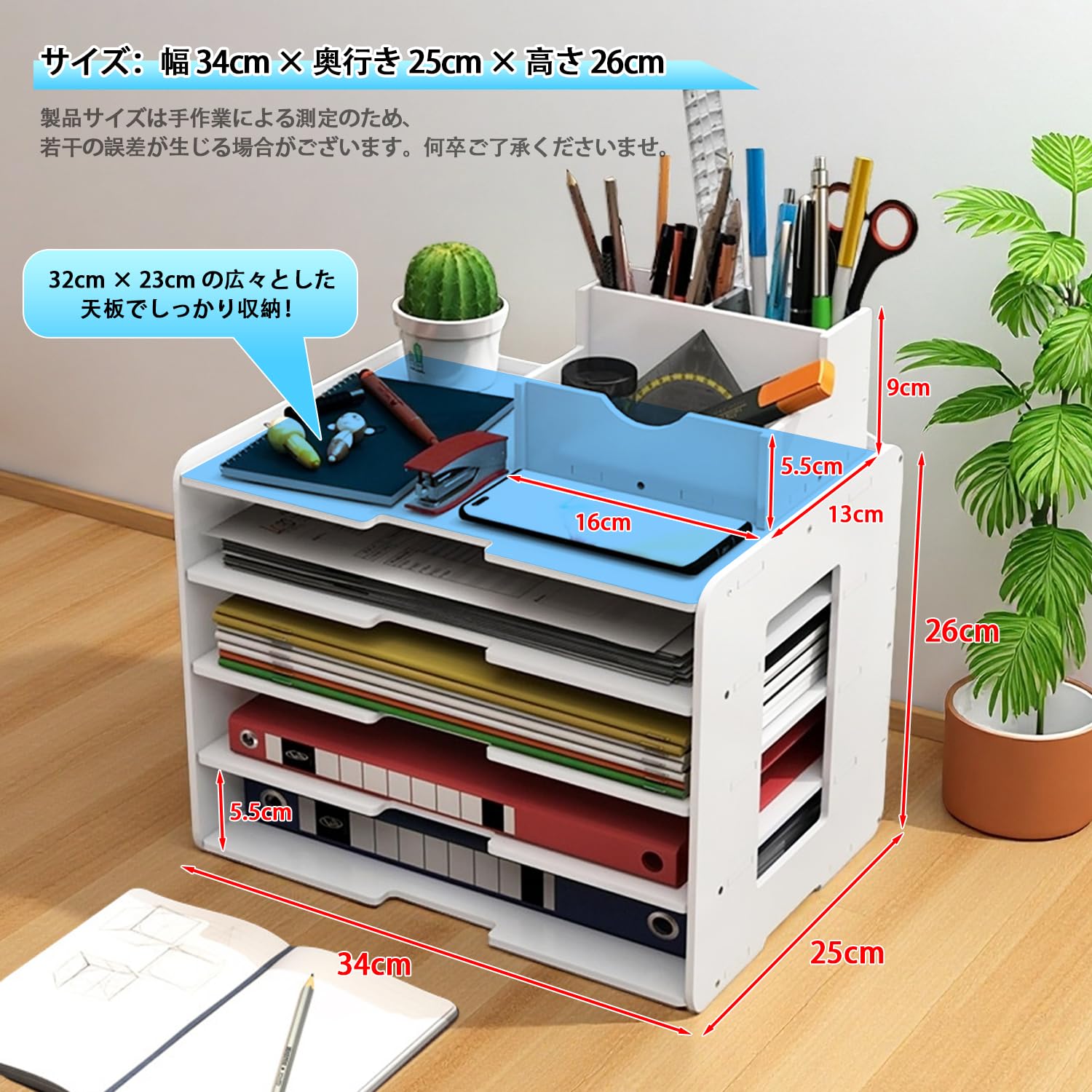 書類収納ボックス 分けデザイン 卓上収納ラック A4ファイルラック 組み立て式 デスクオーガナイザー デスク上置き棚 レターケース フォルダー 新聞/雑誌/書類/机上用品 入れ整理 オフィス/寝室/リビング収納 書類ケース 多機能 机上収納 小物入れ リモコン 文房具 幅34×奥行き25×高さ 26cm