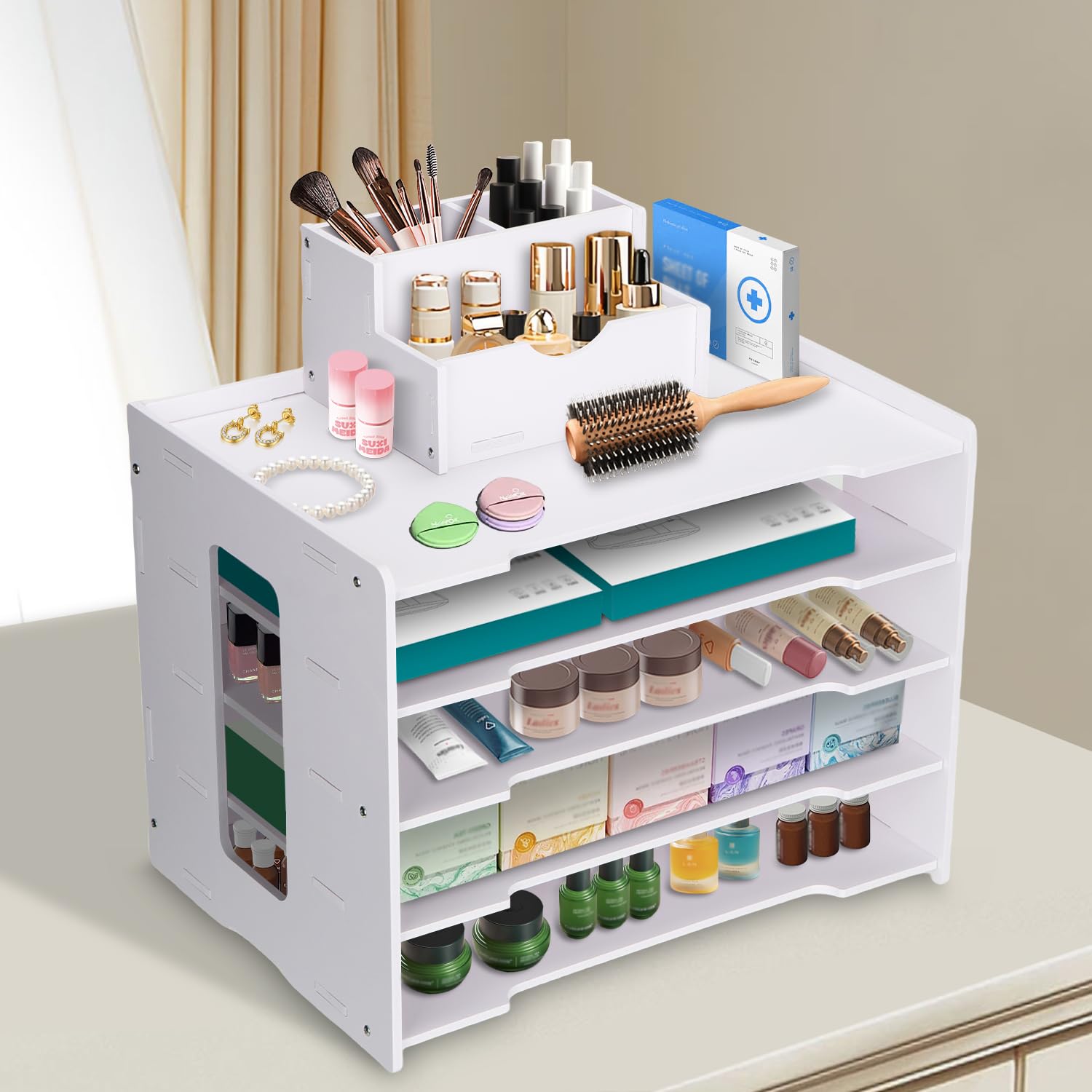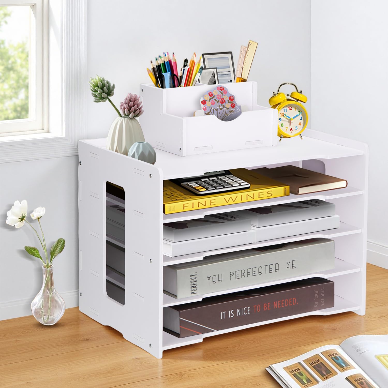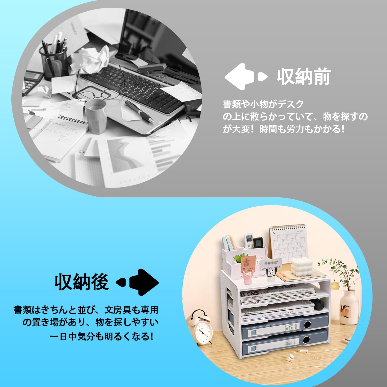 書類収納ボックス 分けデザイン 卓上収納ラック A4ファイルラック 組み立て式 デスクオーガナイザー デスク上置き棚 レターケース フォルダー 新聞/雑誌/書類/机上用品 入れ整理 オフィス/寝室/リビング収納 書類ケース 多機能 机上収納 小物入れ リモコン 文房具 幅34×奥行き25×高さ 26cm