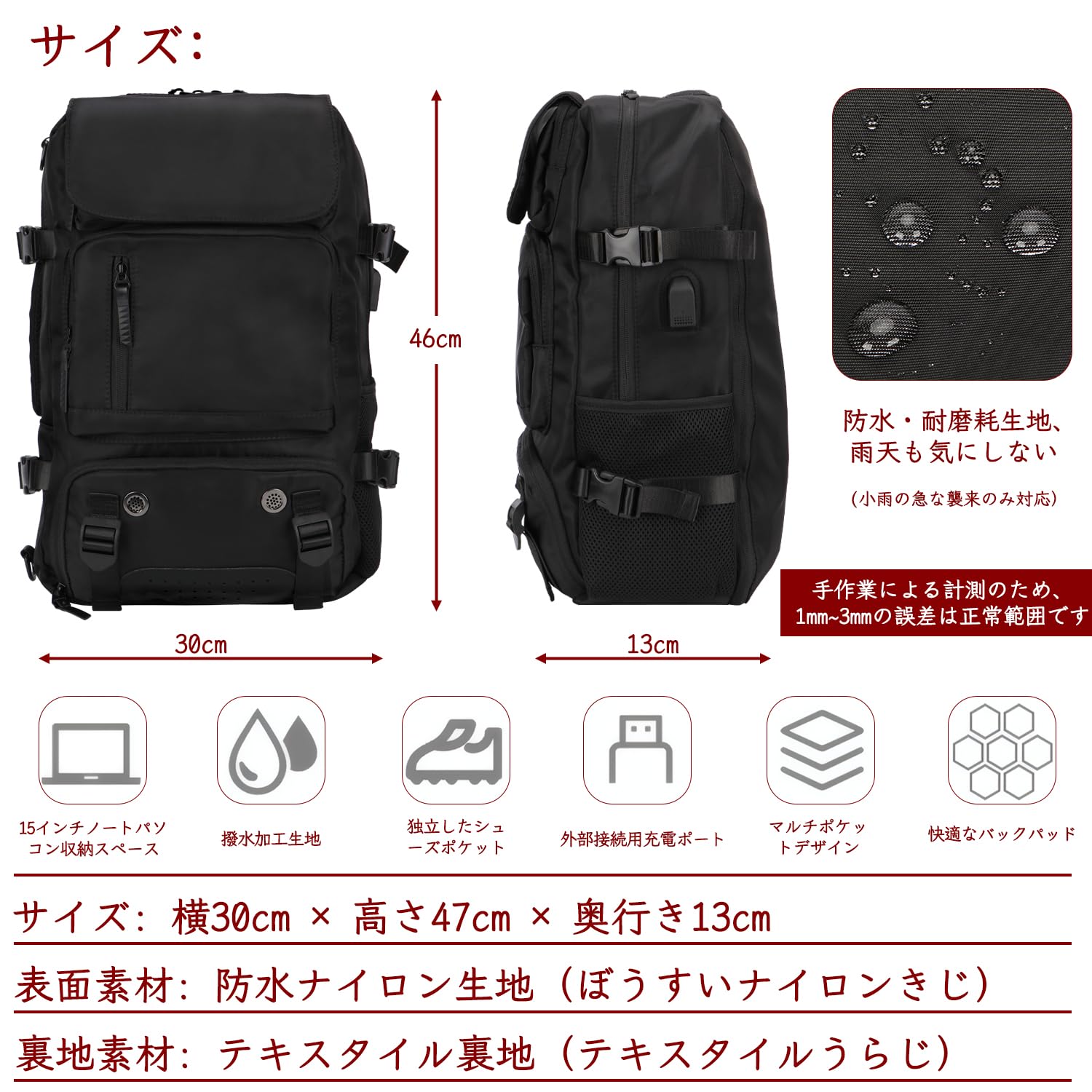 • 【大容量設計】約47cm×30cm×13cmのアウトドア収納バッグ。15インチノートPCやA4書類、2〜4日分の衣類を収容可能なビジネスバッグで、出張や旅行に最適。スーツケースへの固定機能付きで移動が便利です。