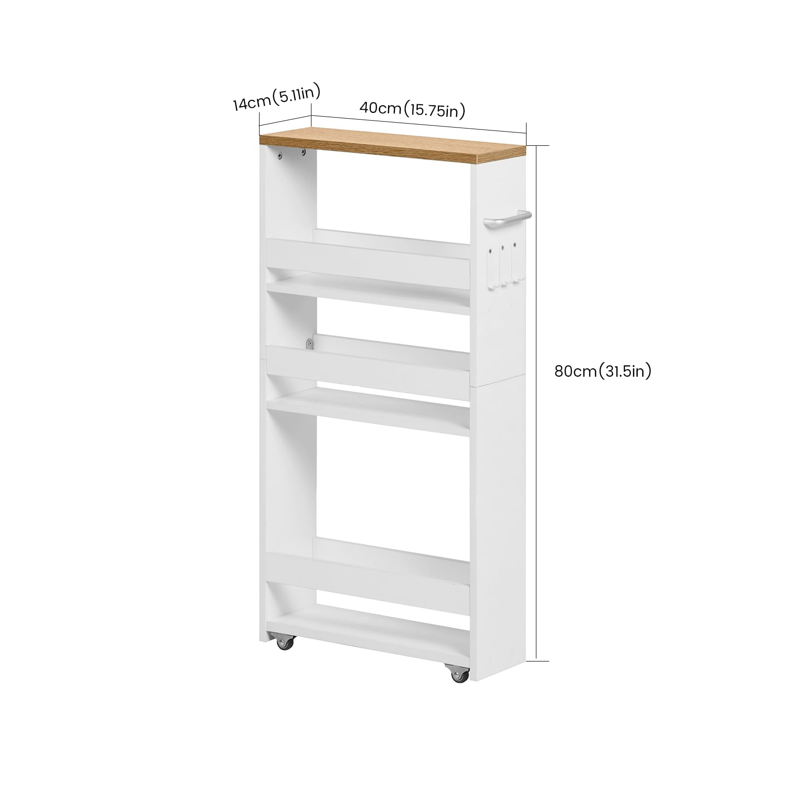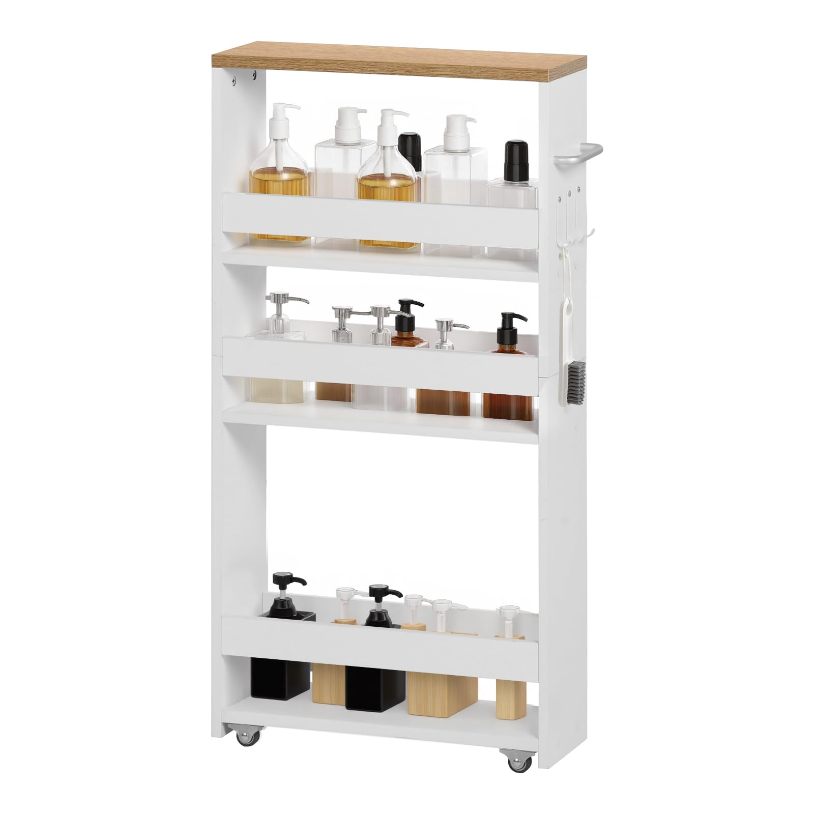 3段キッチンカート キャスター付き 狭いスペース収納 幅40 x 奥行14 x 高さ80cm キッチンワゴン ハンドルと3つのフック付き バスルーム、キッチン洗面所用ハロースペースラック 組み立て簡単