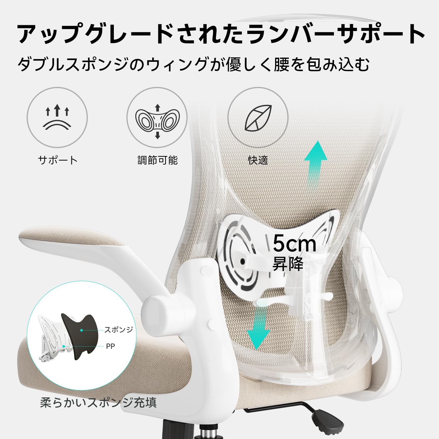 - 【腰リラックス・二重ランバーサポート】J301オフィスチェアの蝶の型腰枕が腰を優しく支えます。上下5cmの調節可能なランバーサポートは透かし雕りメッシュと同じ、良好な通気性を提供します。 緊張した作業中、両手のように腰にフィットして背骨を優しく保護し、座りっぱなしの疲労感と痛みを大幅に改善します。優れた安定性とY字型構造サポートにより、作業や学習が安心になります。
