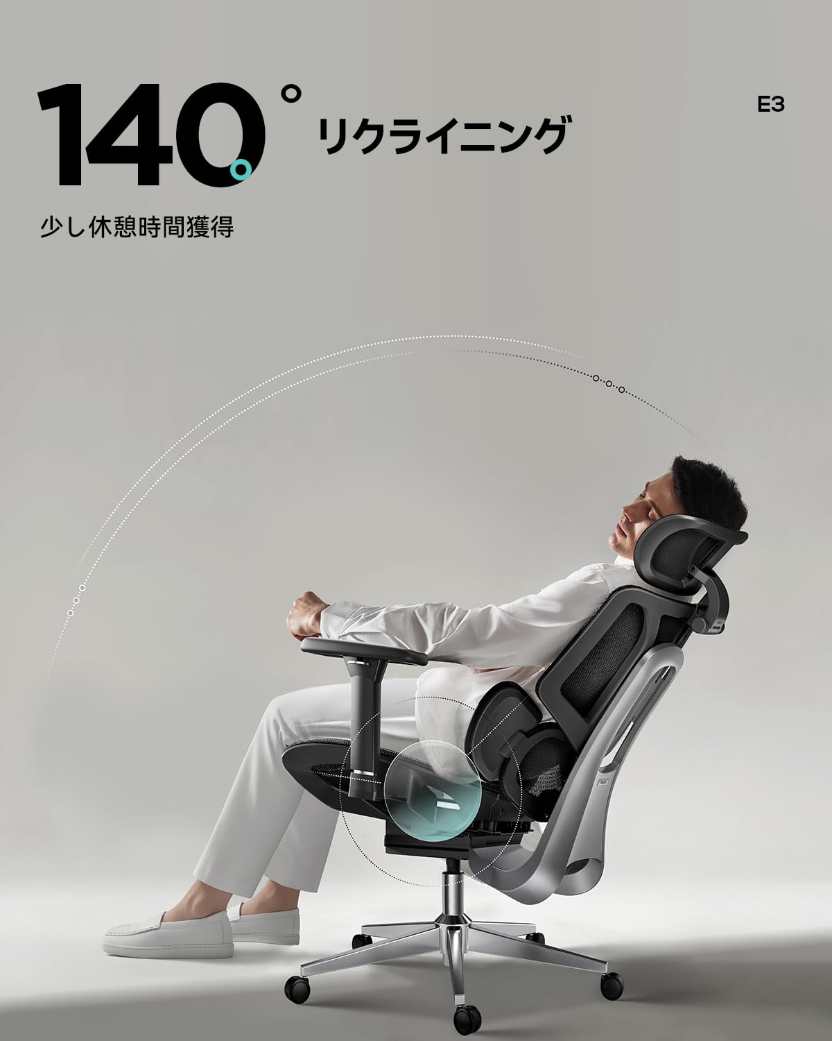 • 【人間工学・不快解消】長い間の人間工学オフィスチェア分野の探索を経てHbada E3カスタマーを製造しました。この独創的な「T形連動支持システム」あるチェアは、首-腰と肩からなるT字形状を力点として、上半身の支持圧力を大きく緩和します。長時間座って仕事をすることによる体調不良も大いに改善します。