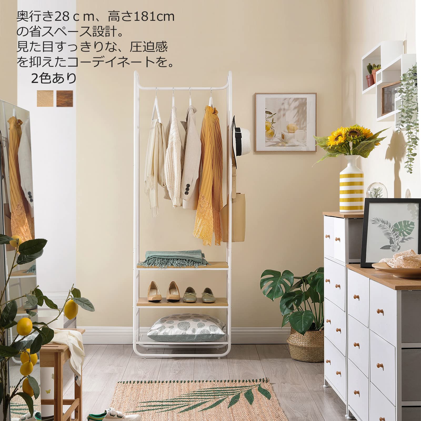 VASAGLE ハンガーラック 木製 スリム 頑丈 シューズラック コートハンガー おしゃれ 省スペース 組み立て簡単全体耐荷重41KG 組立簡単 幅58×奥行28×高さ181cm 玄関 コート掛け 型番HSR81BX/NHSR81BX