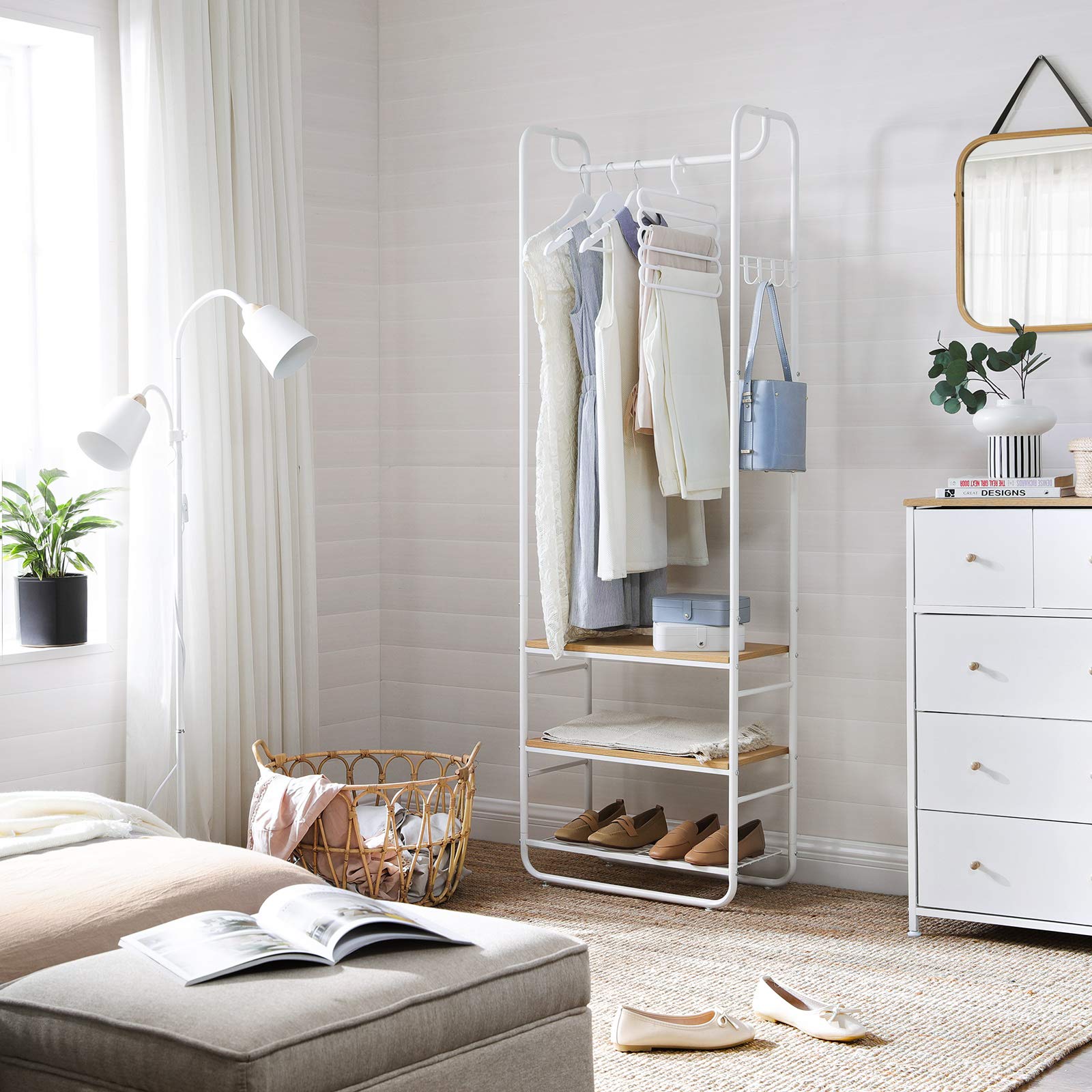 - 【想像超えの収納力】ハンガー部分の耐荷重が10kgで、高さが114cmもあるため、シャツからコートまでゆったり掛けられます。三段棚板とS字ラック付きのデザインで、靴から小物までたっぷり収納できます。幅広い場面でご利用いただけます。型番:HSR81BX/NHSR81BX